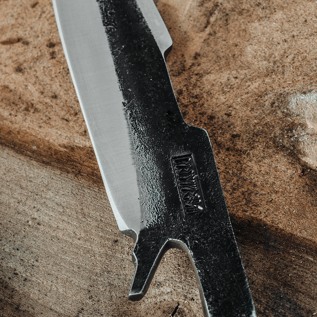Rallar-Messer (Schwedisch: Rallarkniv) bedeutet übersetzt "Navvy-Messer"/"Bauarbeiter-Messer". Ein Rallare (Navvy) war ein Arbeiter, der mit Handwerkzeugen an Eisenbahnprojekten arbeitete. Sie arbeiteten hart und lebten hart. Das Messer ist aus einem alten Eisenbahnnagel geschmiedet, eine Praxis, die bei Rallare/Navvys auf der ganzen Welt üblich ist.