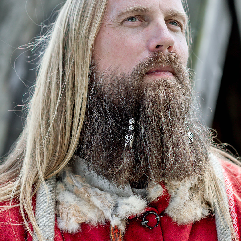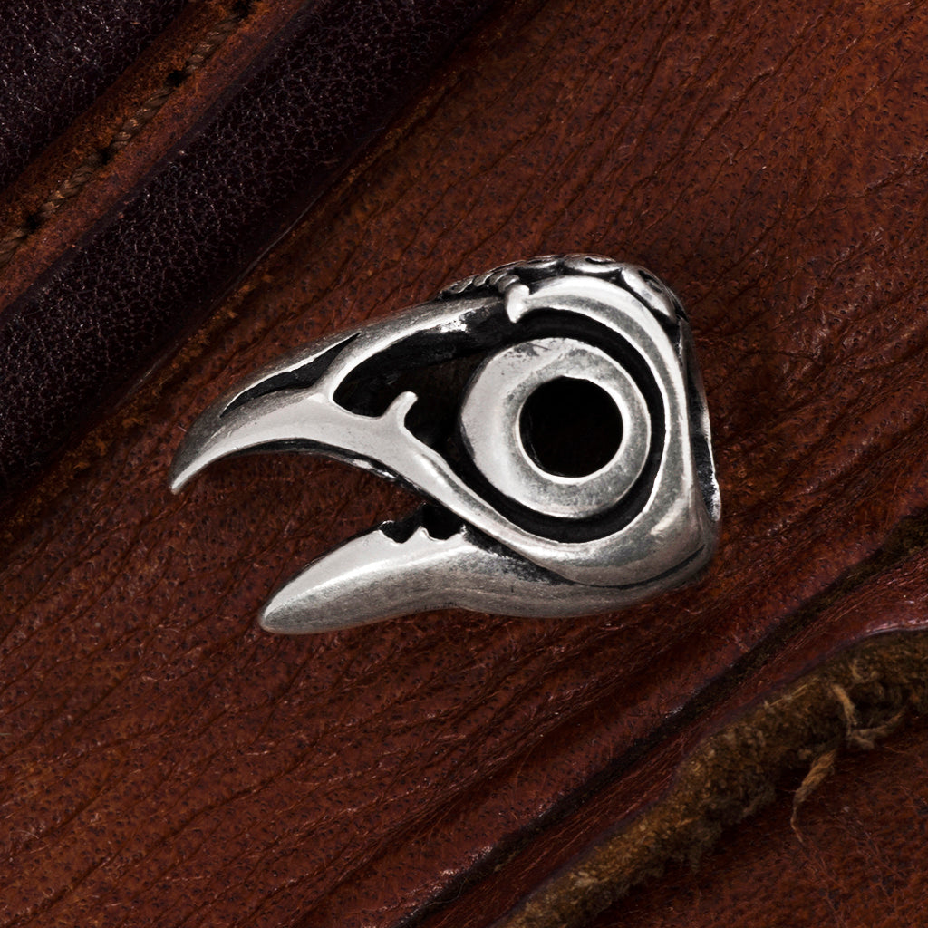 Ein großer Bartring aus massivem Sterlingsilber in Form eines Rabenkopfes. Verwenden Sie zwei Ringe, um Huginn und Muninn, die Raben des Gottes Odin, darzustellen.