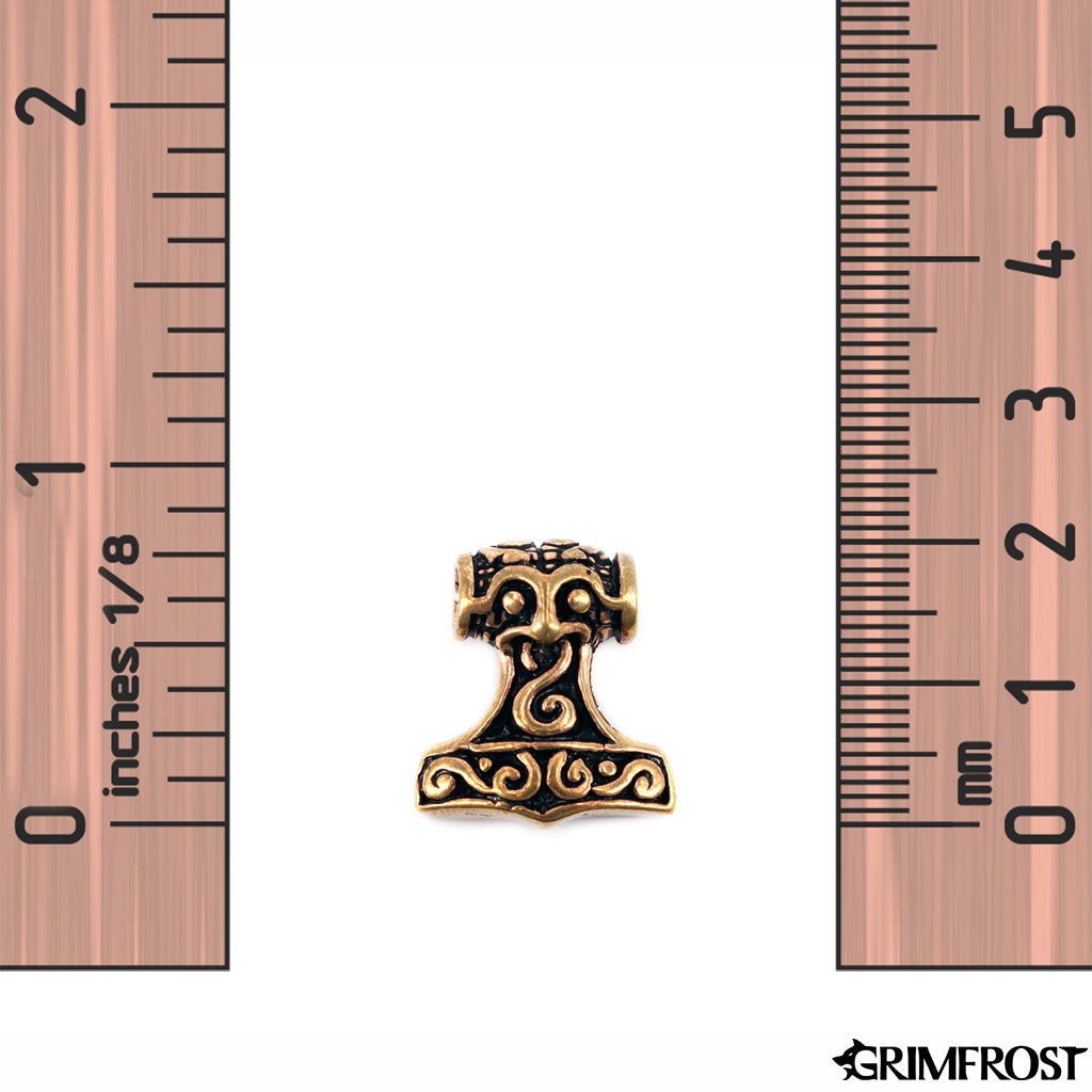 Mini-Version des Thorshammers aus Bronze, gefunden in Skåne, Schweden. Die Rückseite ist ausgehöhlt, um das Gewicht weiter zu verringern.