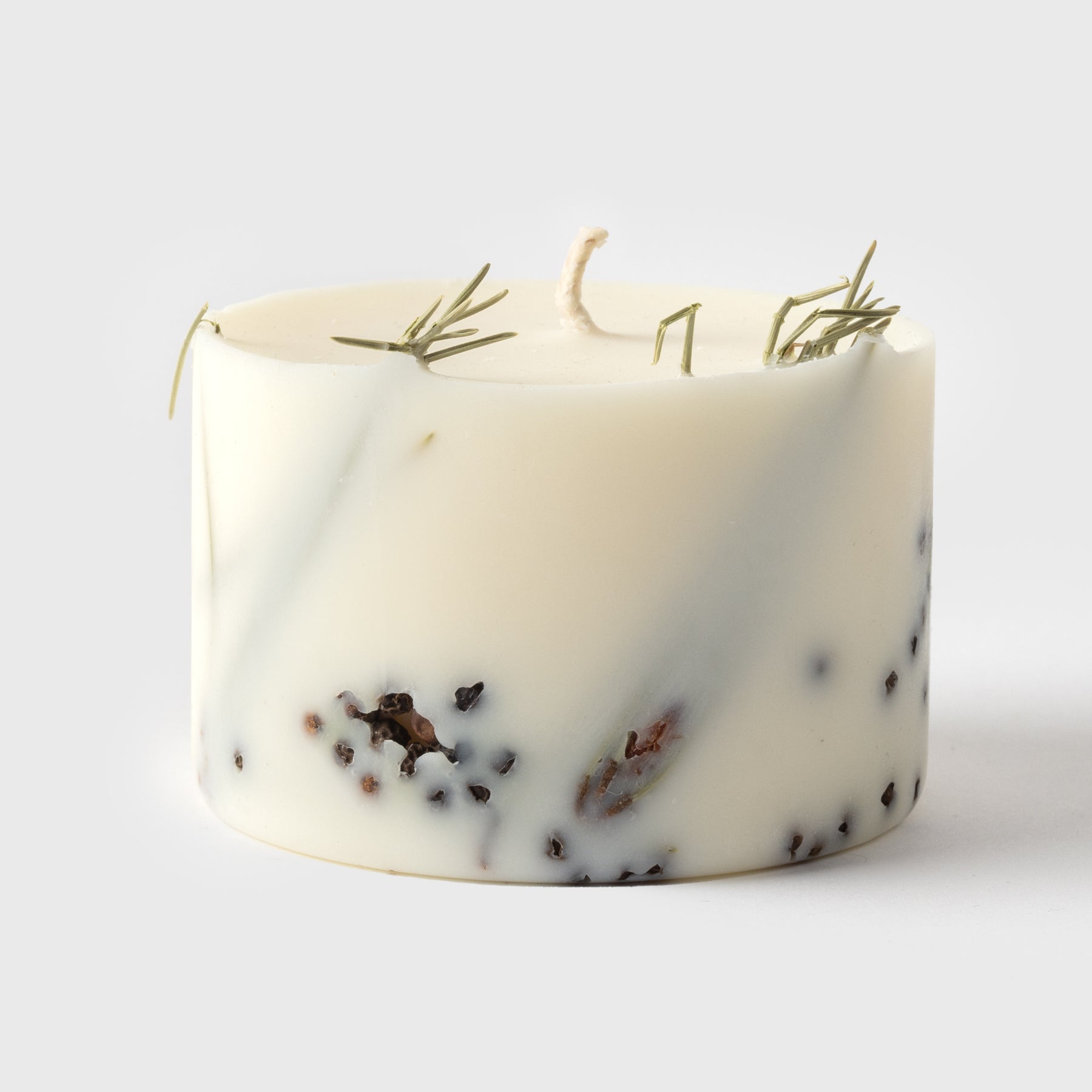 Wunderschöne Wachskerze handgefertigt mit 100% natürlichem Sojawachs, Baumwolldocht und natürlichen Dekoren aus baltischen Wäldern und Wiesen. Die Geschenkverpackung ist aus hochwertigem, plastikfreiem Kraftkarton gefertigt. Sie ist mit ungiftigen Farben und grüner LED-UV-Technologie bedruckt.