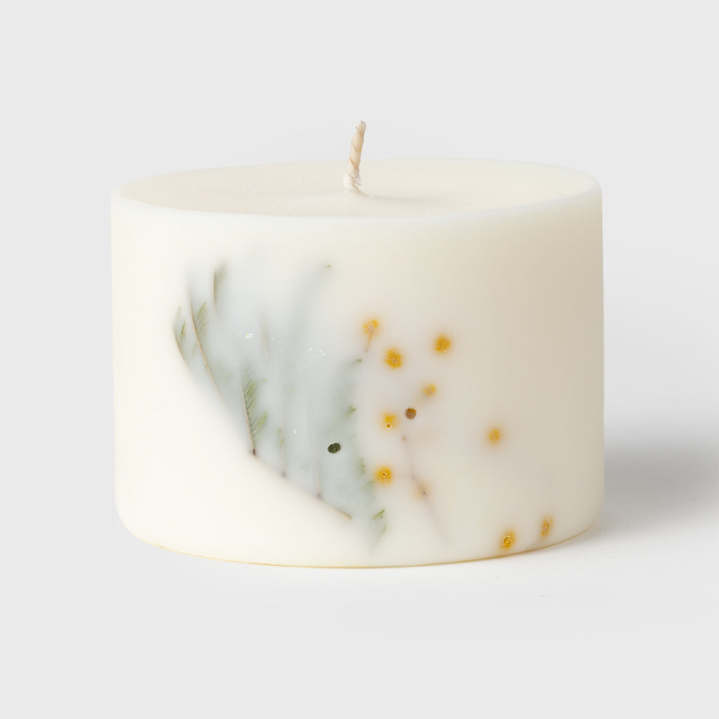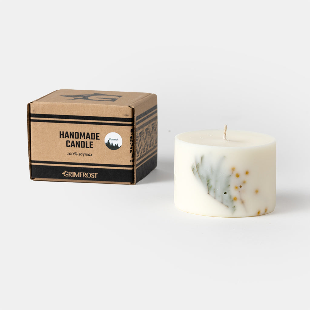 Wunderschöne Wachskerze handgefertigt mit 100% natürlichem Sojawachs, Baumwolldocht und natürlichen Dekoren aus baltischen Wäldern und Wiesen. Die Geschenkverpackung ist aus hochwertigem, plastikfreiem Kraftkarton gefertigt. Sie ist mit ungiftigen Farben und grüner LED-UV-Technologie bedruckt.