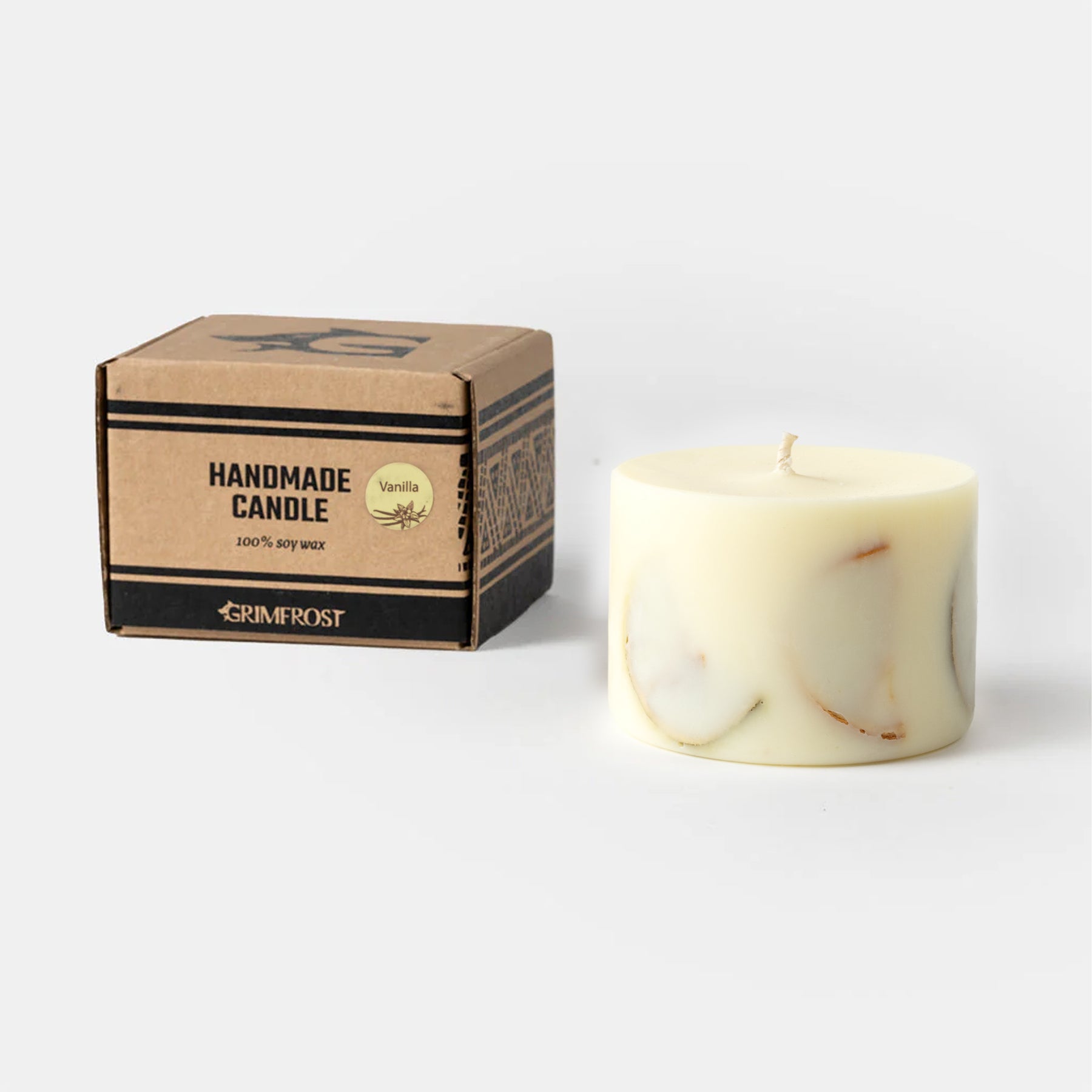 Wunderschöne Wachskerze handgefertigt mit 100% natürlichem Sojawachs, Baumwolldocht und natürlichen Dekoren aus baltischen Wäldern und Wiesen. Die Geschenkverpackung ist aus hochwertigem, plastikfreiem Kraftkarton gefertigt. Sie ist mit ungiftigen Farben und grüner LED-UV-Technologie bedruckt.