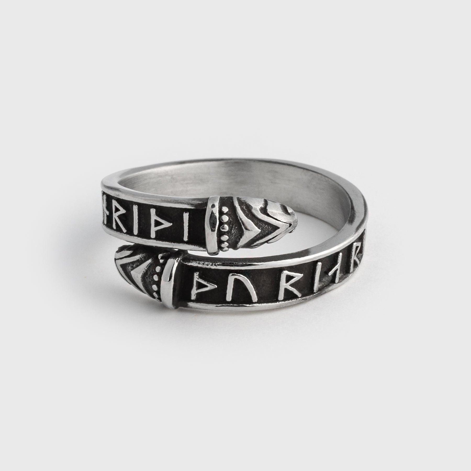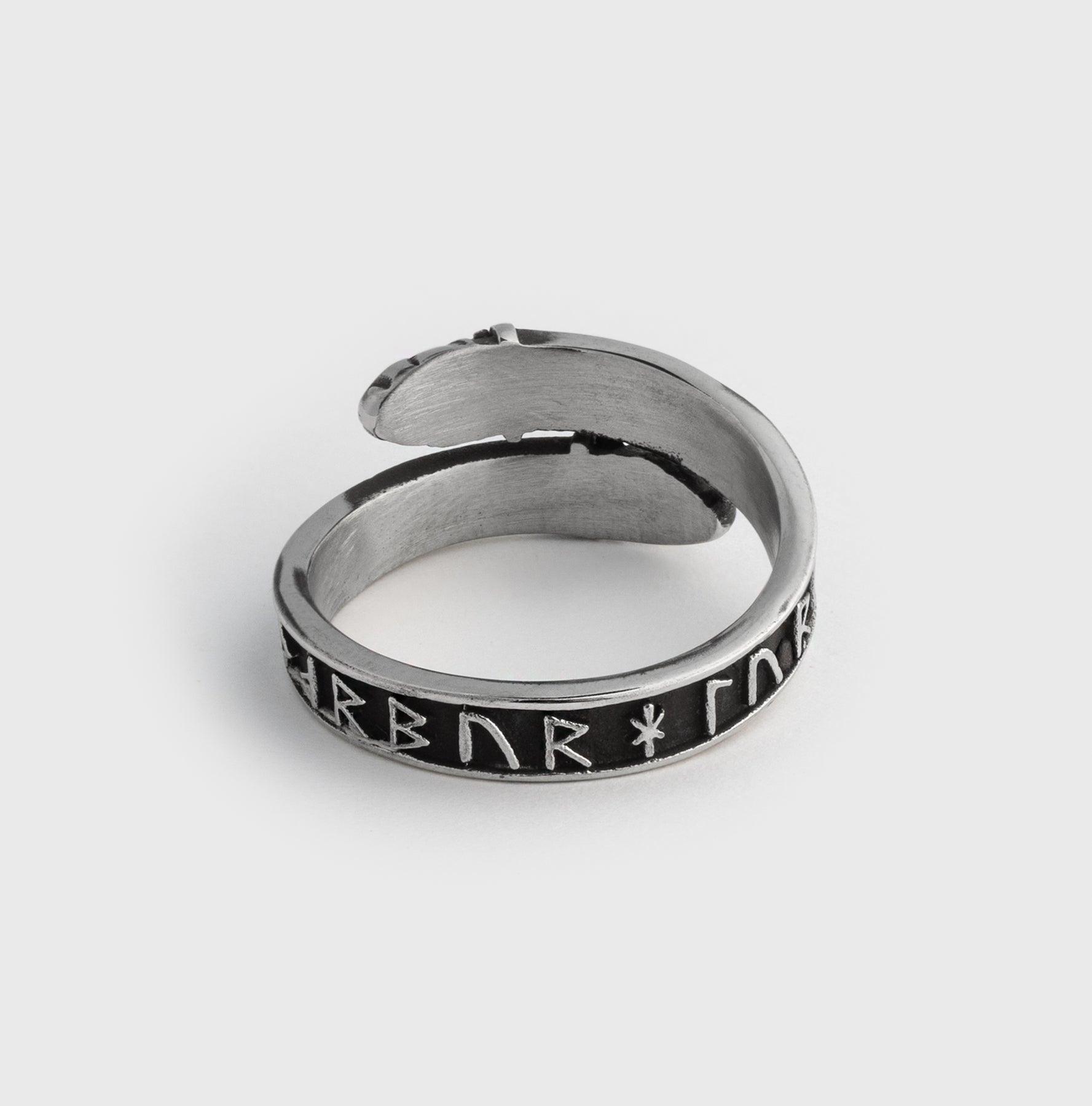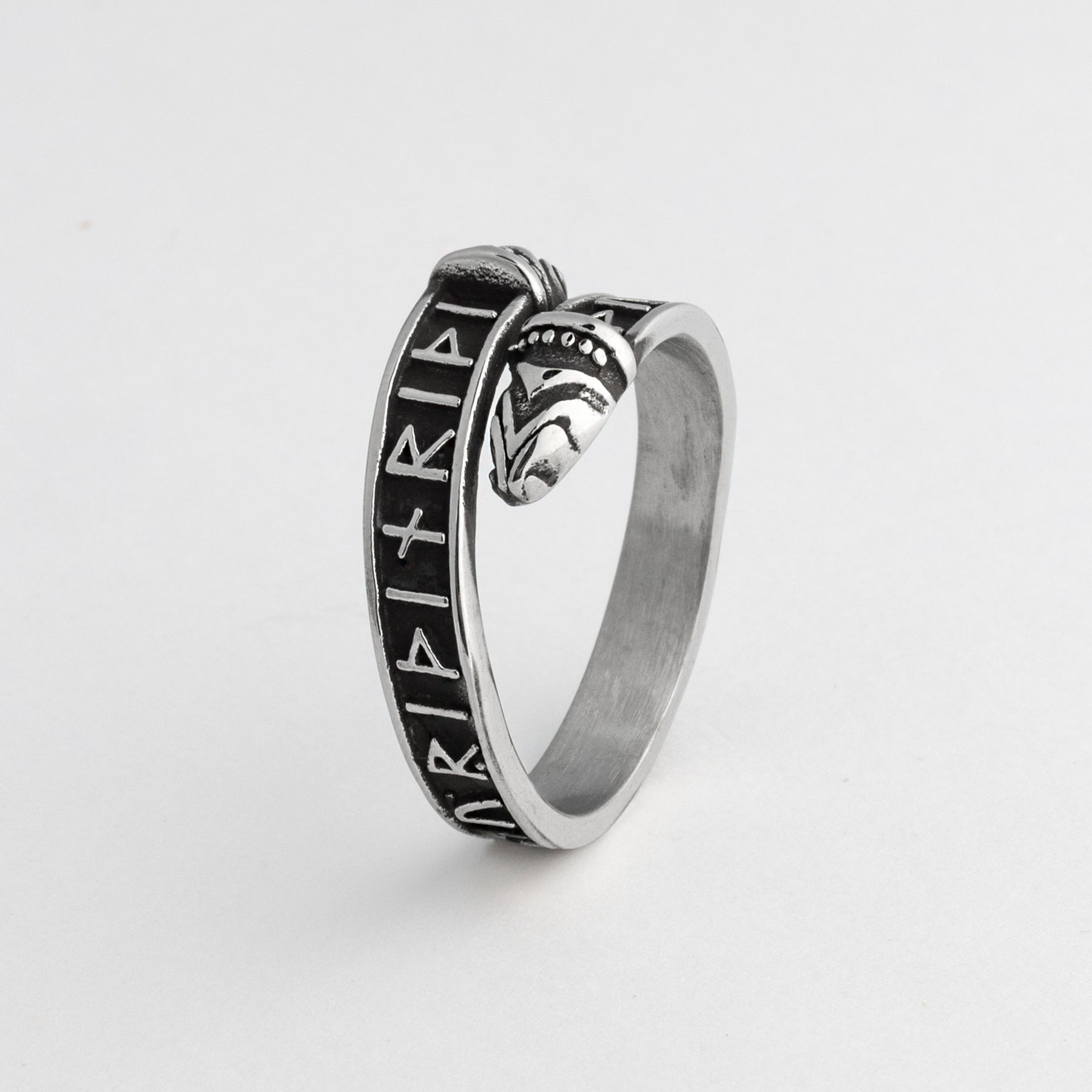 Ring aus rostfreiem Stahl in der Form eines Lindwurms. Auf ihm steht mit dem Jüngeren Futhark geschrieben: "Þorr jarðar burr hlórriði einriði", was übersetzt soviel bedeutet wie: "Thor, der Sohn der Erde, der donnernde Sturm, der allein reist". Das sind alles verschiedene Bezeichnungen, die für Thor verwendet werden. Der Ring kann in der Größe leicht angepasst werden.