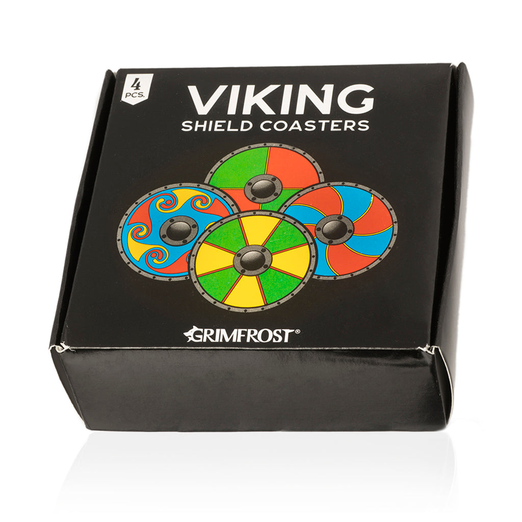 Set von 4 Wikingerschild-Untersetzern mit einer erstaunlichen Wasseraufnahmefähigkeit. Sie bestehen aus Kieselgur, einem bemerkenswerten Naturprodukt, das aus winzigen versteinerten Wasserpflanzen besteht. Die Unterlage ist aus Kork gefertigt. Verwenden Sie sie stilvoll für heiße und kalte Getränke.
