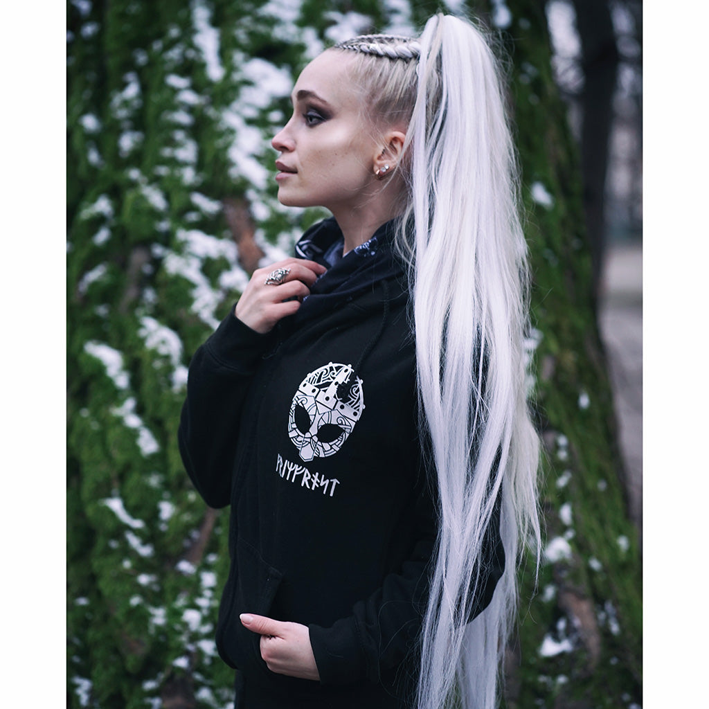 Lernen Sie Ihren neuen Lieblings-Hoodie kennen. Dieser Premium-Kapuzenpullover mit Reißverschluss wurde speziell für Grimfrost aus weicher, luxuriöser Bio-Baumwolle hergestellt. Sogar die Färbe- und Druckverfahren sind komplett biologisch, was sowohl für Sie als auch für Mutter Erde gut ist. Der Kapuzenpullover kommt mit geräumige n Kängurutaschen. Um das Ganze abzurunden, haben wir die Ösen des Kordelzugs mit einem Runenkreis des jüngeren Futhark versehen.