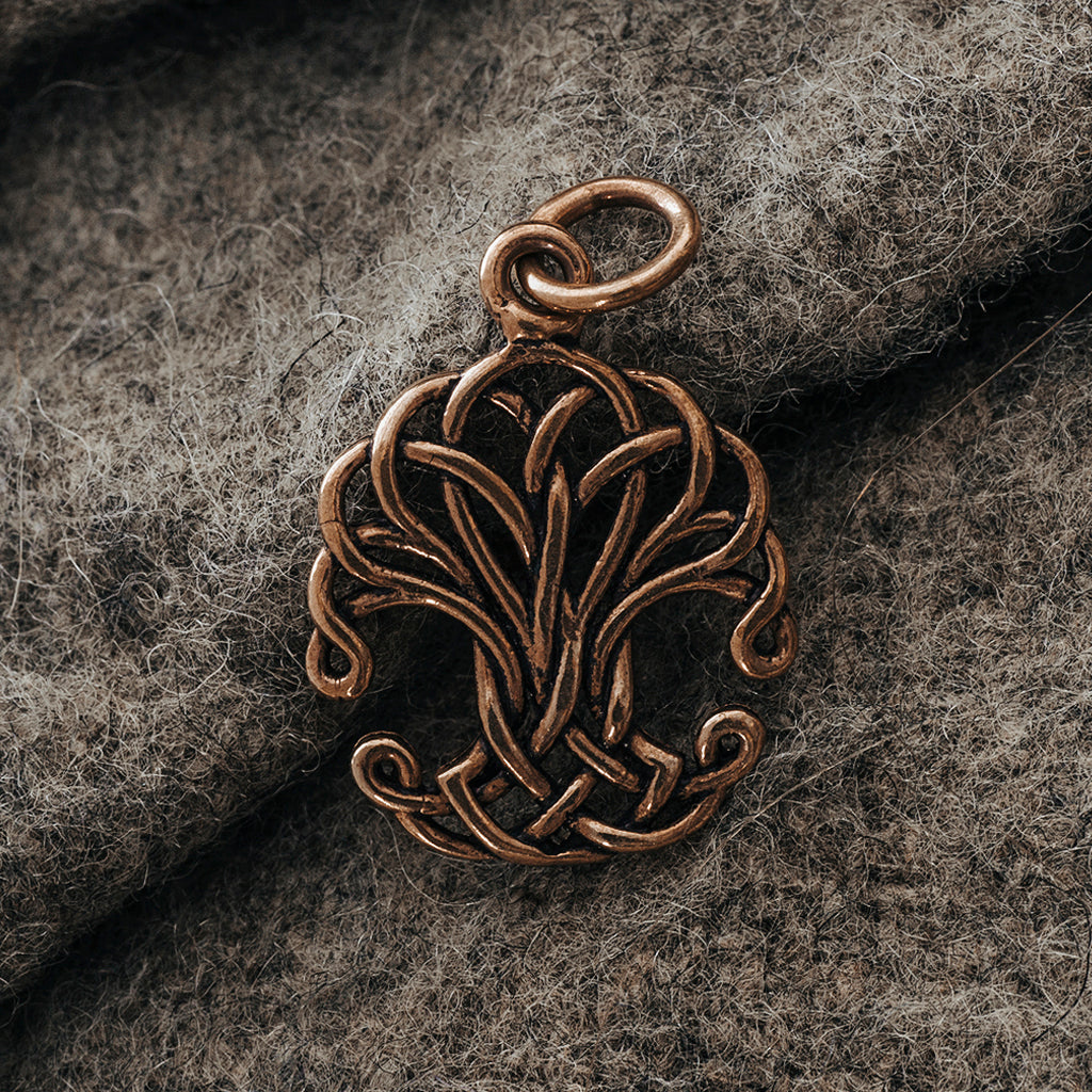 Anhänger aus Bronze in Form eines geflochtenen Yggdrasil-Baums.