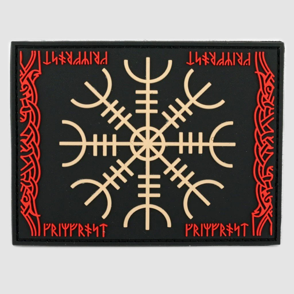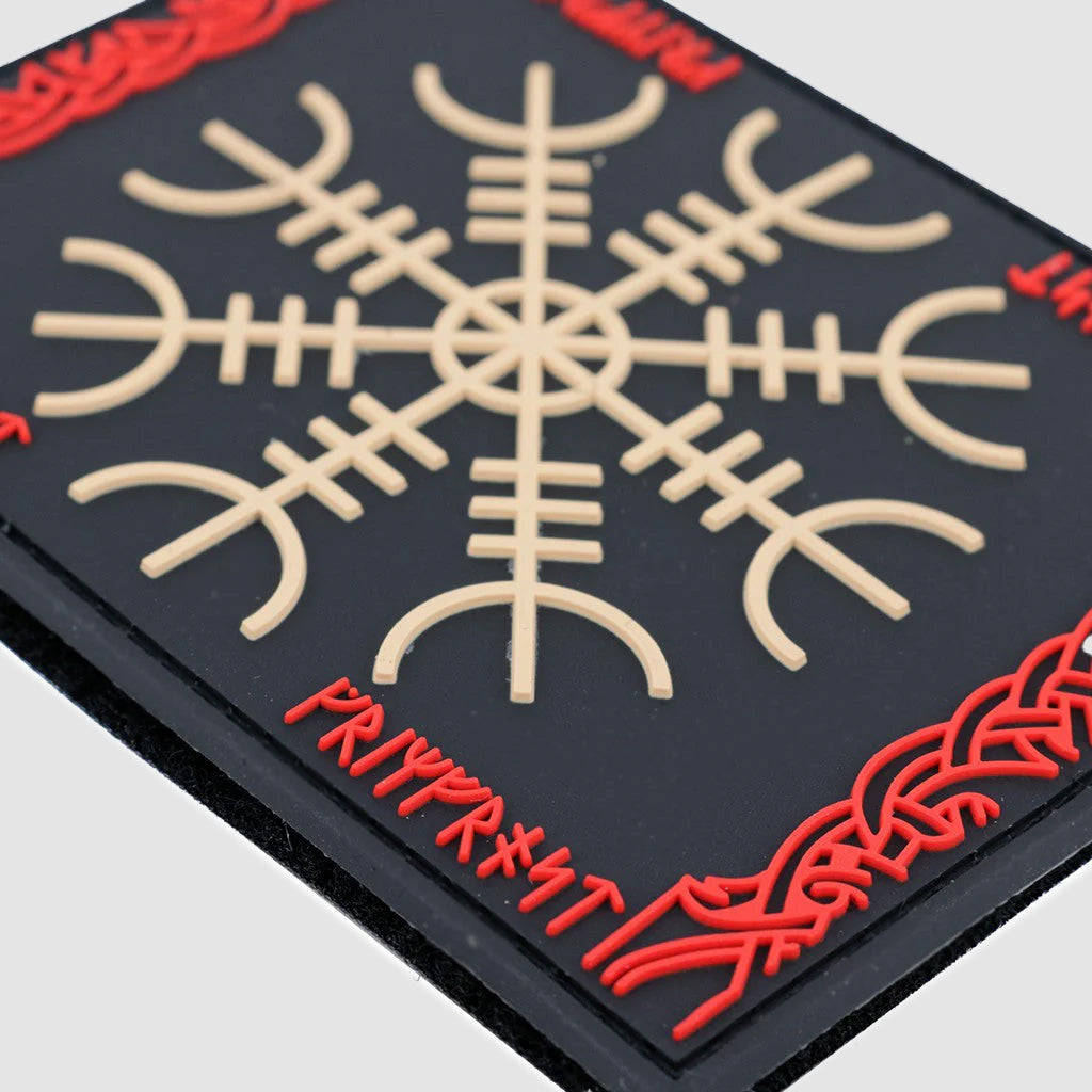 Morale PVC patch with the Ægishjálmur and Grimfrost's rune logos. Hook velcro is sewn on the back. The patch also comes with an additional velcro part that can be sewn on the item where you want the patch.
