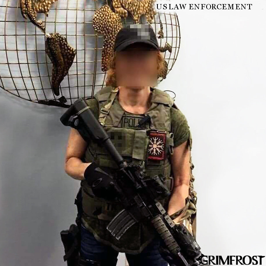 Ægishjálmur (old norse: helm of awe/helm of terror) is an old magical symbol that induces fear in enemies and protects against abuse of power. It is mentioned in the old sagas, such as in the Völsunga Saga, where the dragon Fafnir wears one between his eyes. Its usage can easily be adapted to modern day usage on a morale patch.