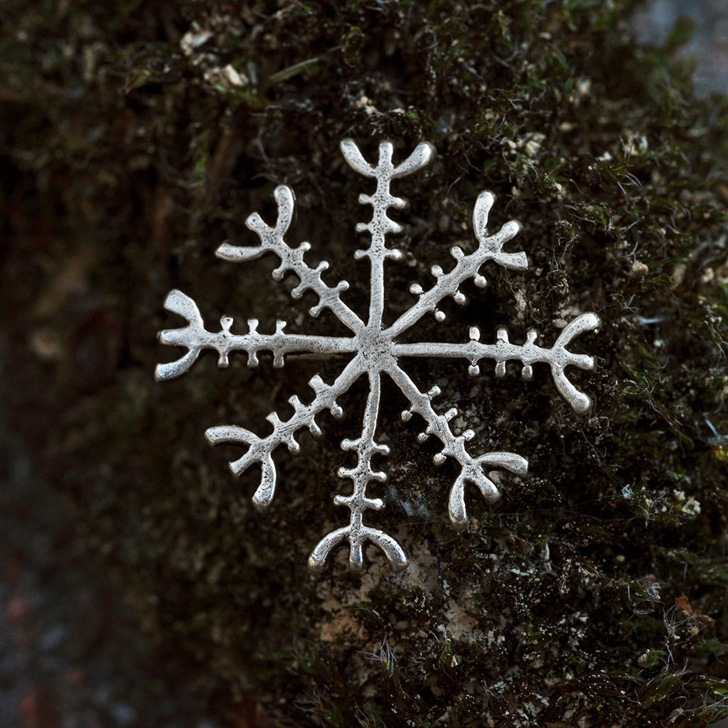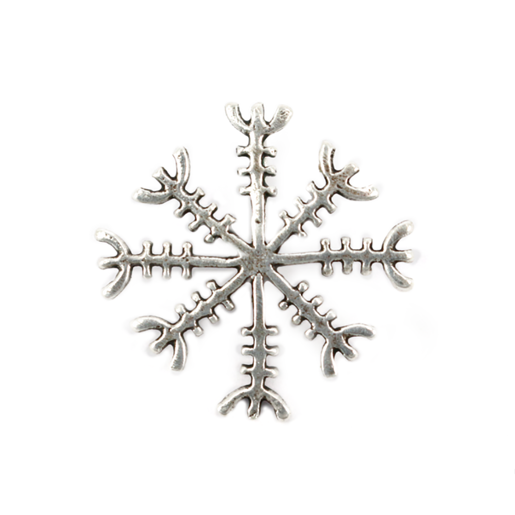 Ægishjálmur (old norse: helm of awe/helm of terror) is an old magical symbol that induces fear in enemies and protects against abuse of power. It is mentioned in the old sagas, such as in the Völsunga Saga, where the dragon Fafnir wears one between his eyes. Scenes from the Völsunga Saga are depicted on a rune stone in Uppland Sweden that is dated to around the year 1000.