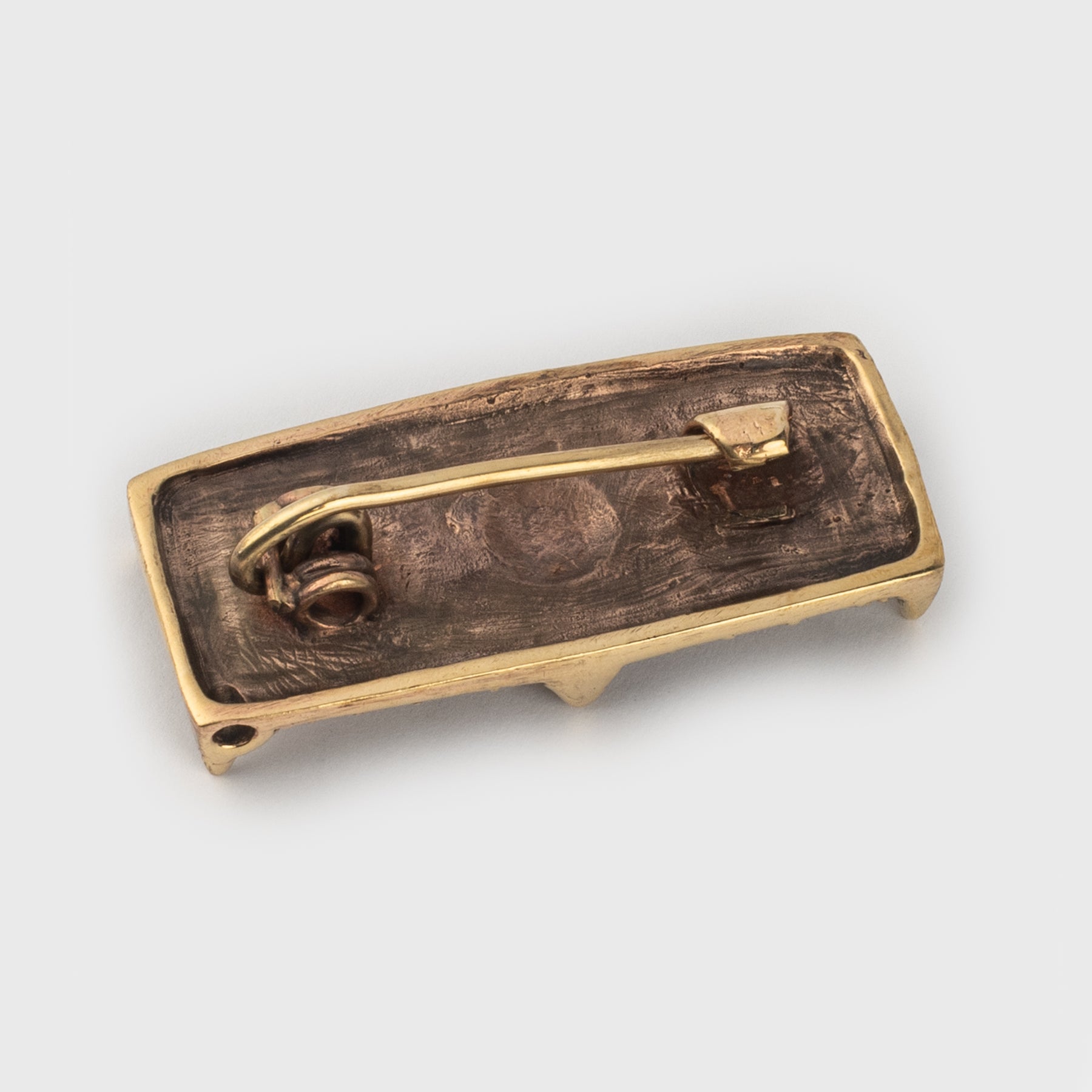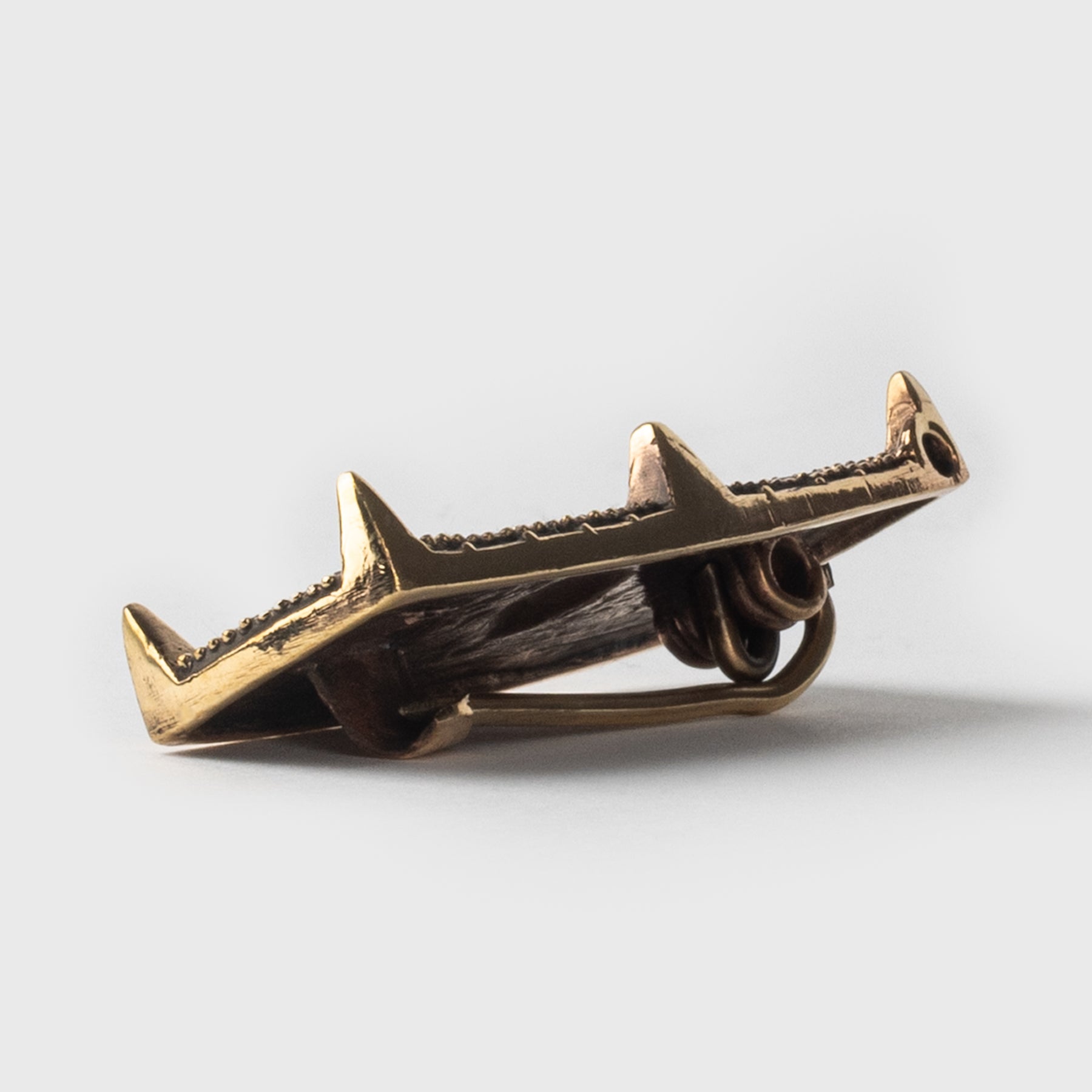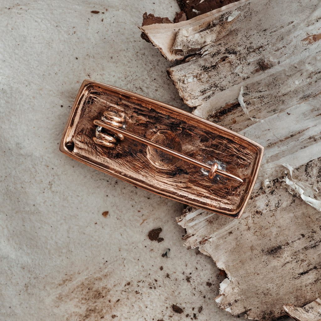 A detailed, high-quality Viking brooch crafted in solid bronze. It is a reproduction of the 9th Century silver brooch found in grave Bj 539 in Birka, Sweden. The back has a needle with a lock mechanism and the side has a hole from where it is possible to hang something.