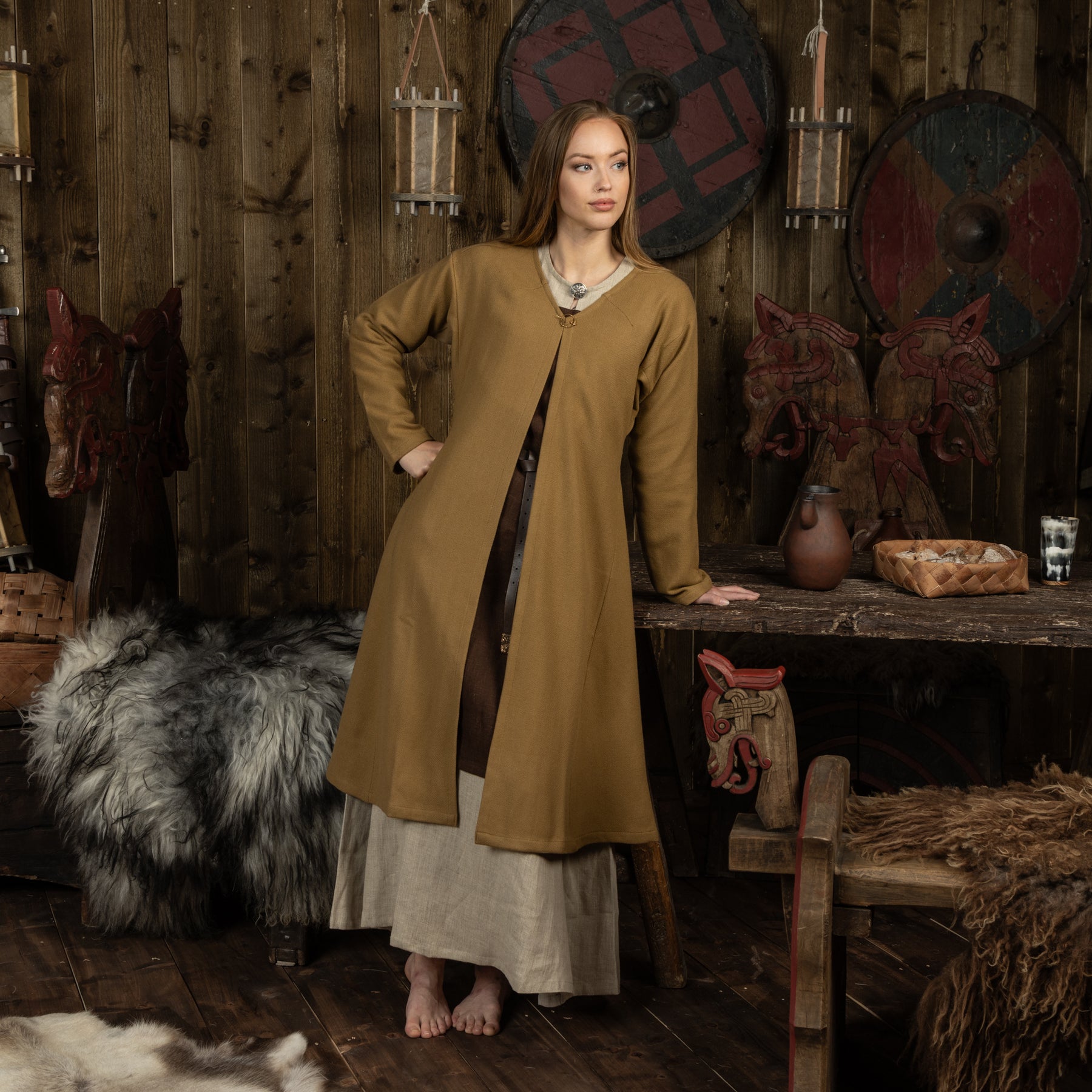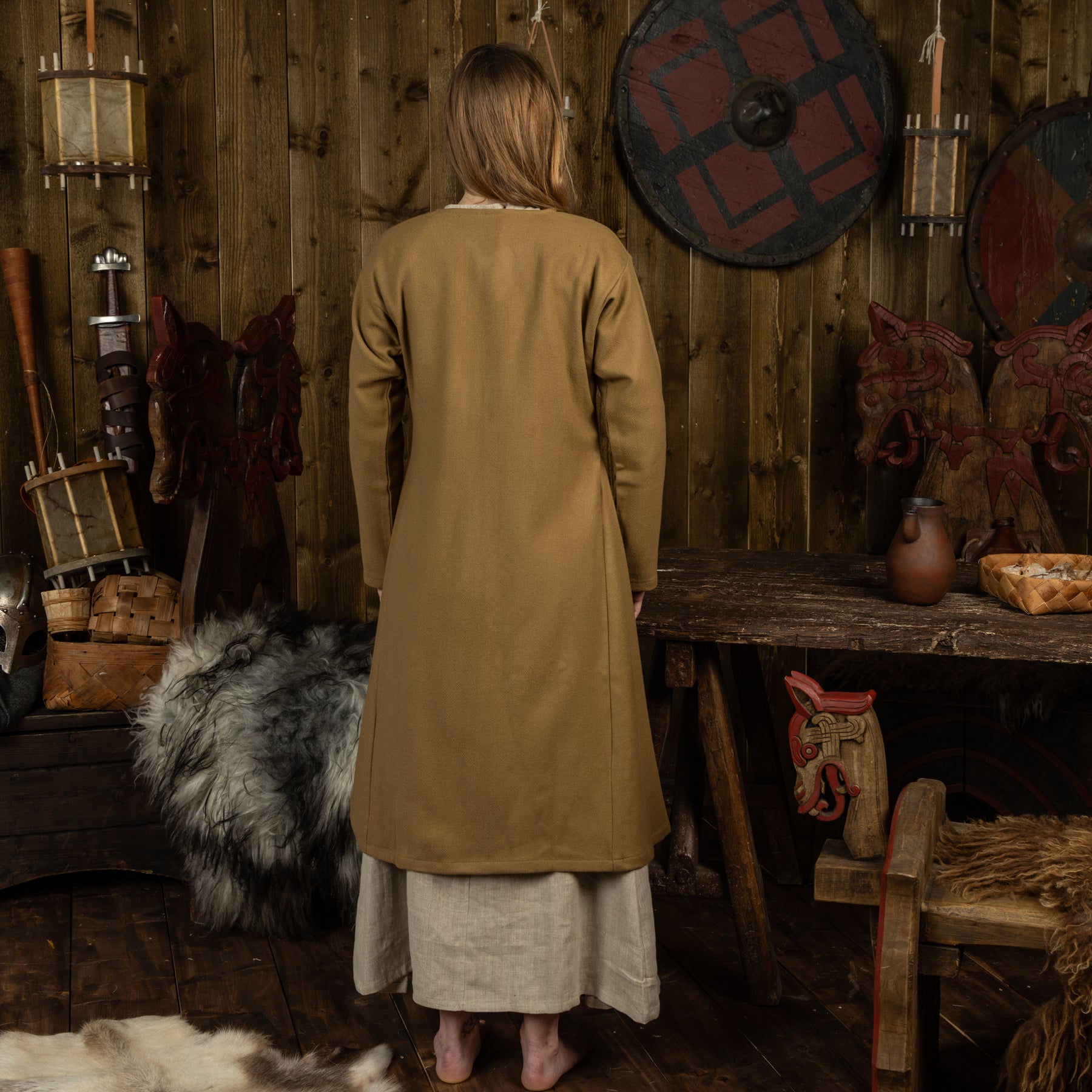 Great looking, comfortable Viking Age women's coat made from durable diamond twill wool. It is based on a grave find from Birka, Sweden. Wear it over your dress to keep warm during chilly and windy days. Use a small brooch or fibula to close it.