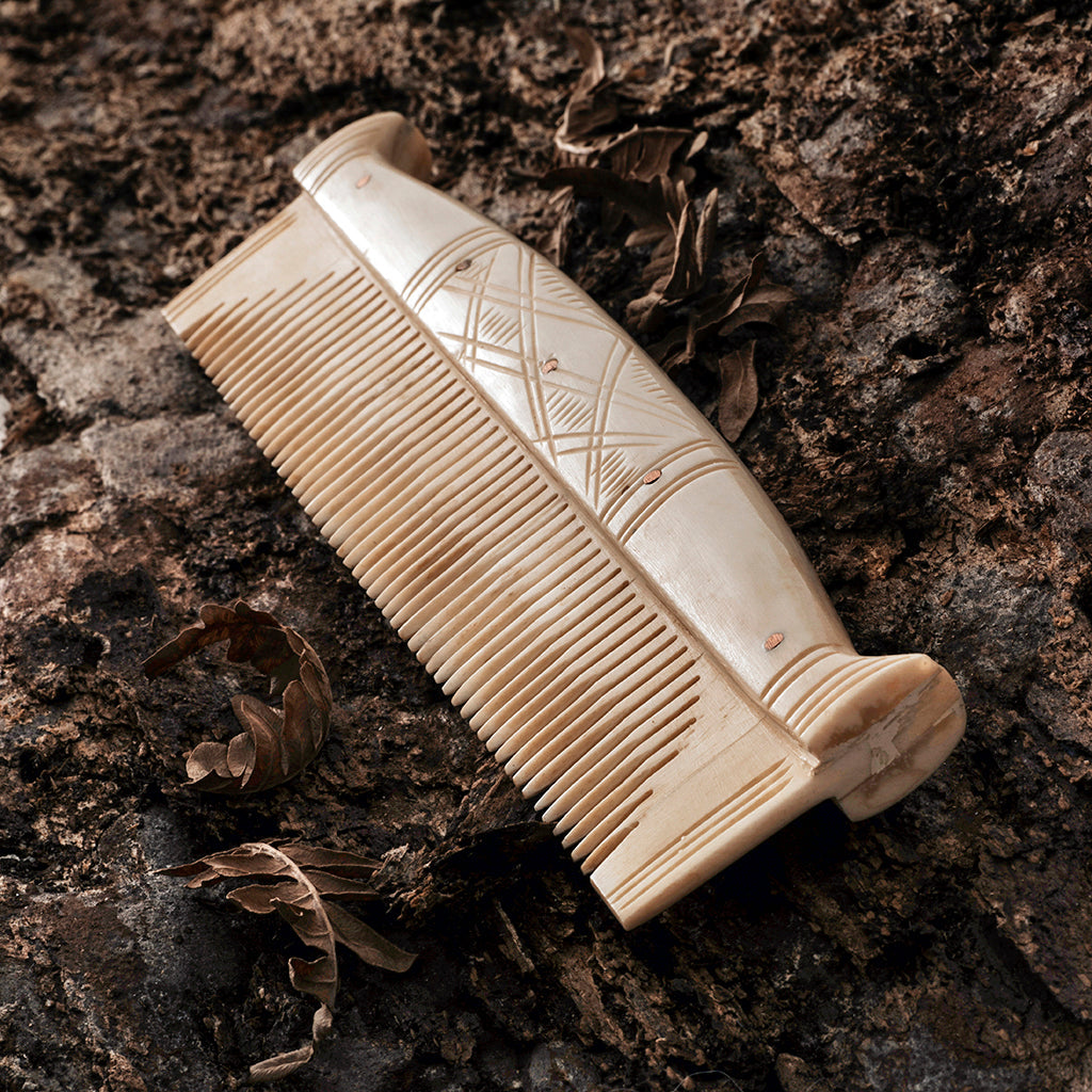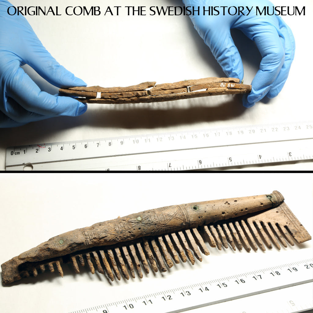 Grimfrost reconstructed the comb for the Birka Museum's 2020 Exhibition where a number of graves were fully recreated. The original comb was carefully documented at the Swedish History Museum in order to get an accurate reconstruction from the 1100 year old piece.