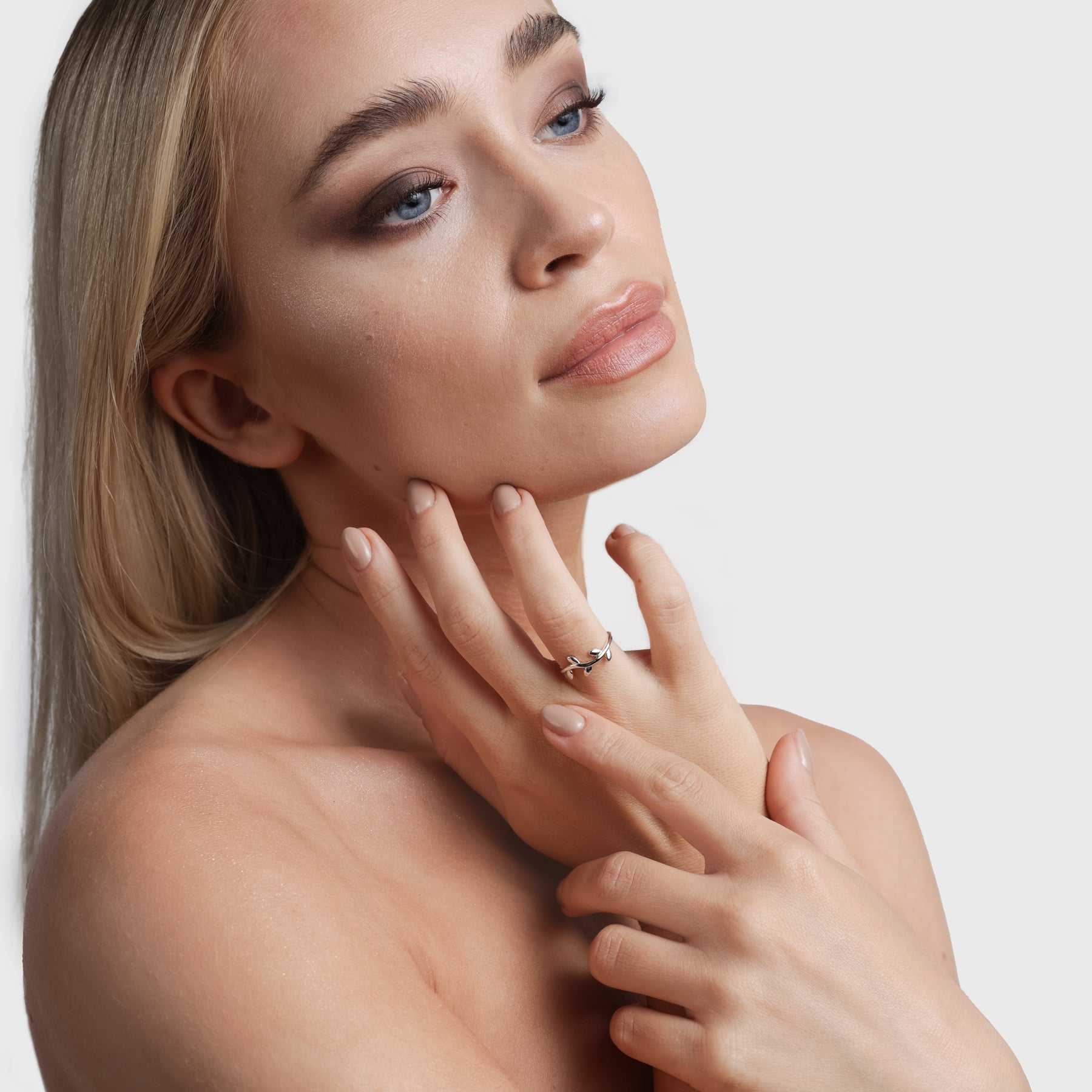 A beautiful, delicate ring with flowing leaves. Expertly handmade of solid sterling silver 925, this ring is guaranteed to please. The design is inspired by the old rune poem Bjarkan, which translates to birch: "Birch is a leafy twig, a little tree and a fresh young shrub."