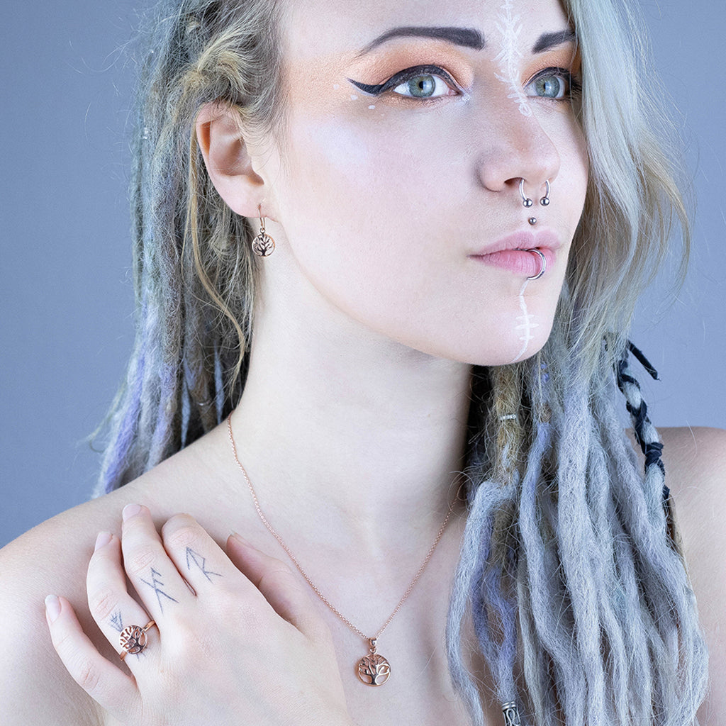 A beautiful jewelry set named after the first woman according to Norse mythology. Expertly handmade of solid sterling silver 925 with a 18 carat rose gold plating, this set is guaranteed to please.