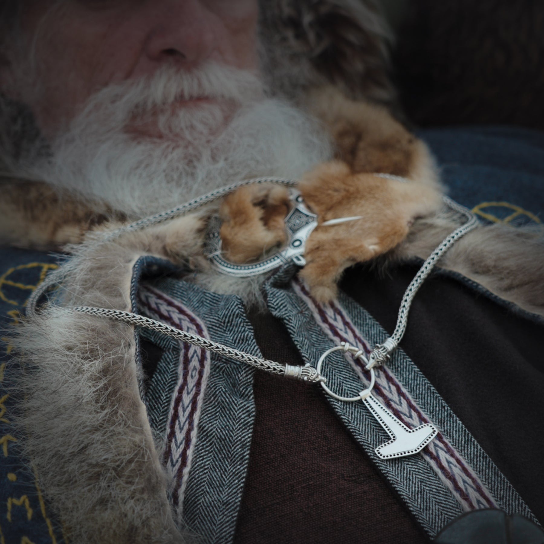 The chain, the split ring and the bear heads are 100% handmade from solid Sterling Silver 925. The bear heads are based on the unique find in Eketorp, Sweden in 2017. The split ring is simple to open and close, which allows for different pendants to be hung from it, and for the chain to be removed and put on easily.