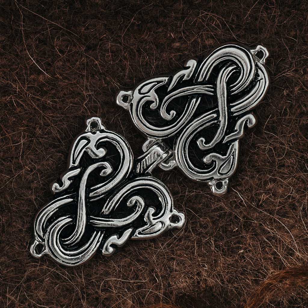 Carefully handmade clasp for garments in the shape of coiling lindworms.