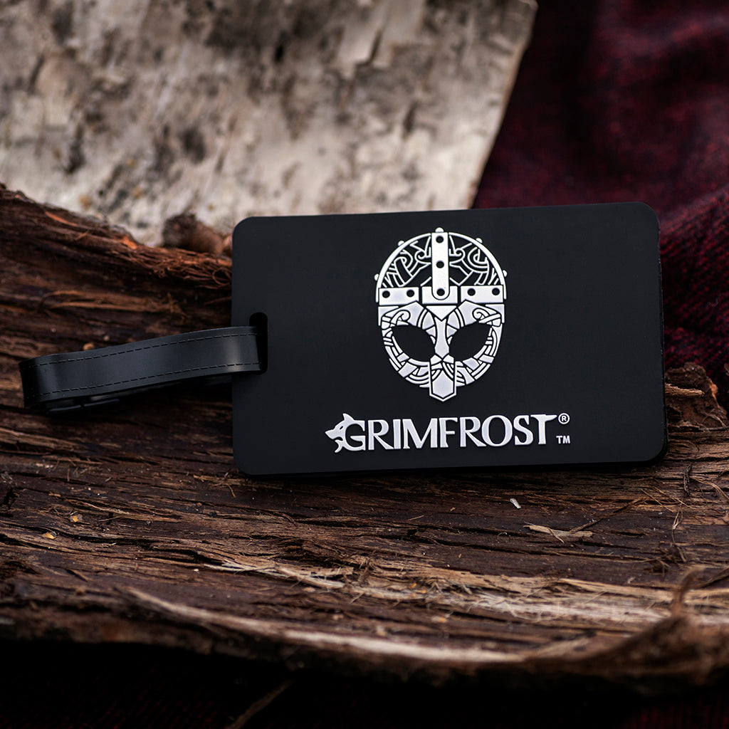 Travel with style and make sure to label your ownership with Grimfrost's luggage tag. It comes with our custom helmet logo and a name card.