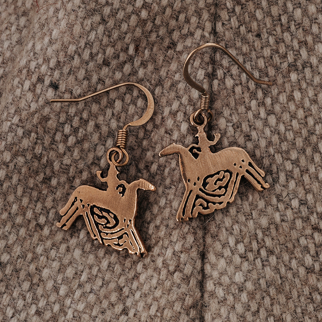 Handmade earrings depicting Odin on his eight-legged steed Sleipnir. The design is based on the 8th Century carving on the Tjängvidestenen in Sweden.