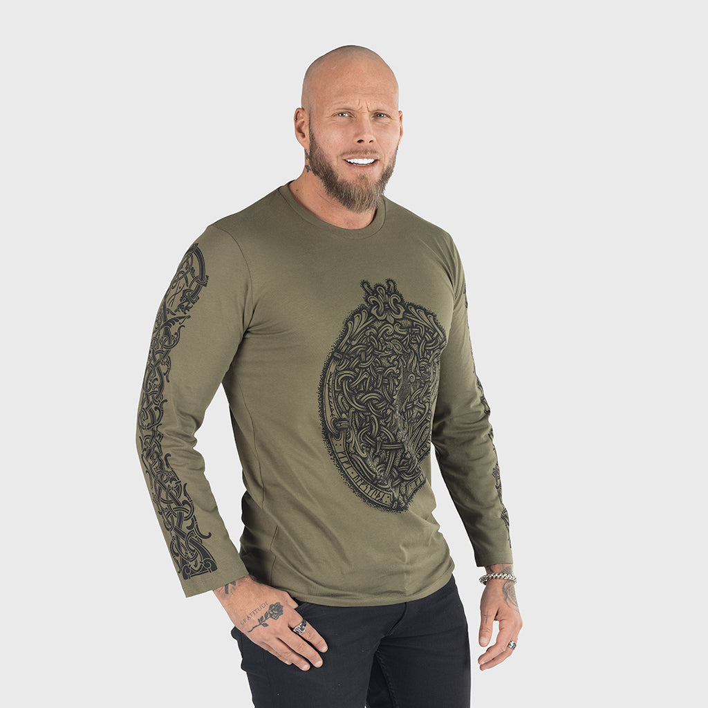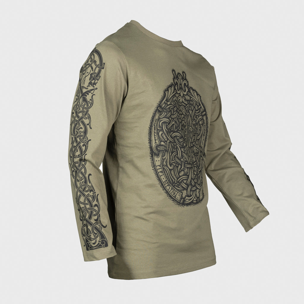 Premium longsleeve that is custom-made for Grimfrost in soft, luxurious organic cotton. Even the dyeing and printing processes are fully organic, which is good for both You and Mother Earth.