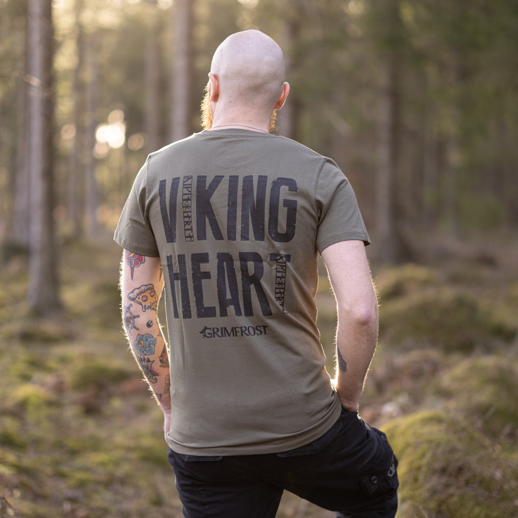 It is printed with "Viking Heart" printed on both the back and front. Some of the letters also have "Viking Heart" in Old Norse written in them with runes.