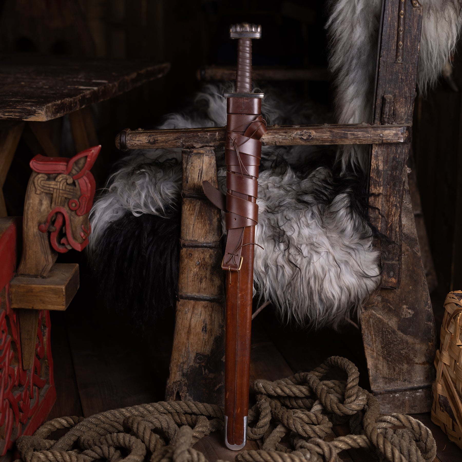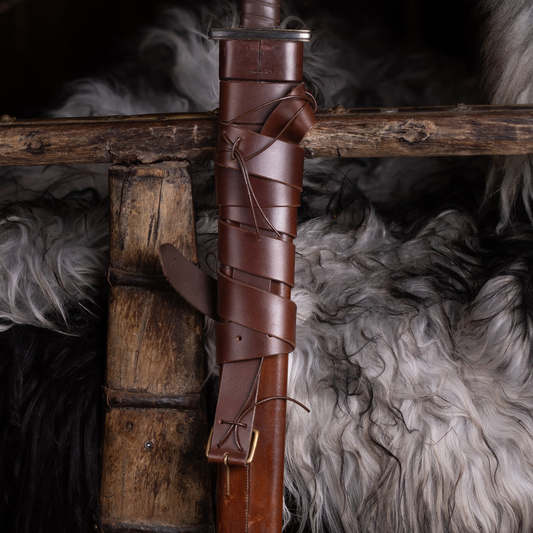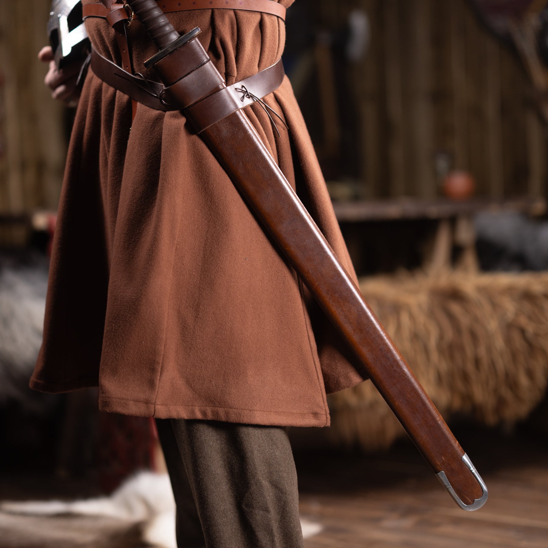 Scabbard that fits all our swords. Made in wood and covered with leather, it is both durable and historically accurate. It comes with a belt that is long enough to be cut and adjusted in length.