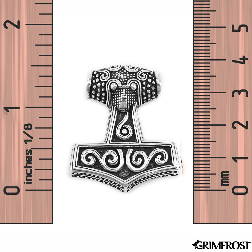 Mjölnir (English: Crusher), is the hammer of Thor, the Norse God of Thunder. An amulet depicting Mjölnir is known as a “Thor’s Hammer” and it was worn by the Vikings as an amulet of protection and power.