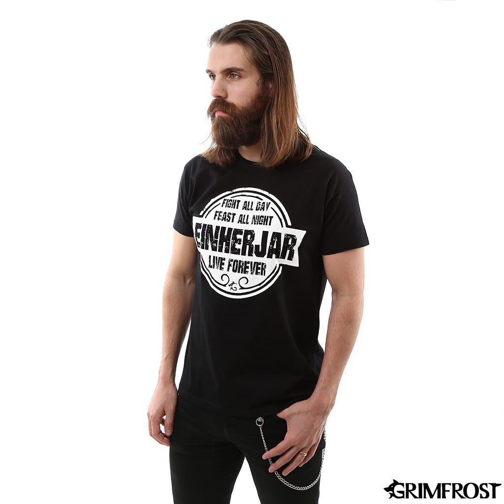 Printed with "Einherjar - Fight All Day, Feast All Night, Live Forever"
