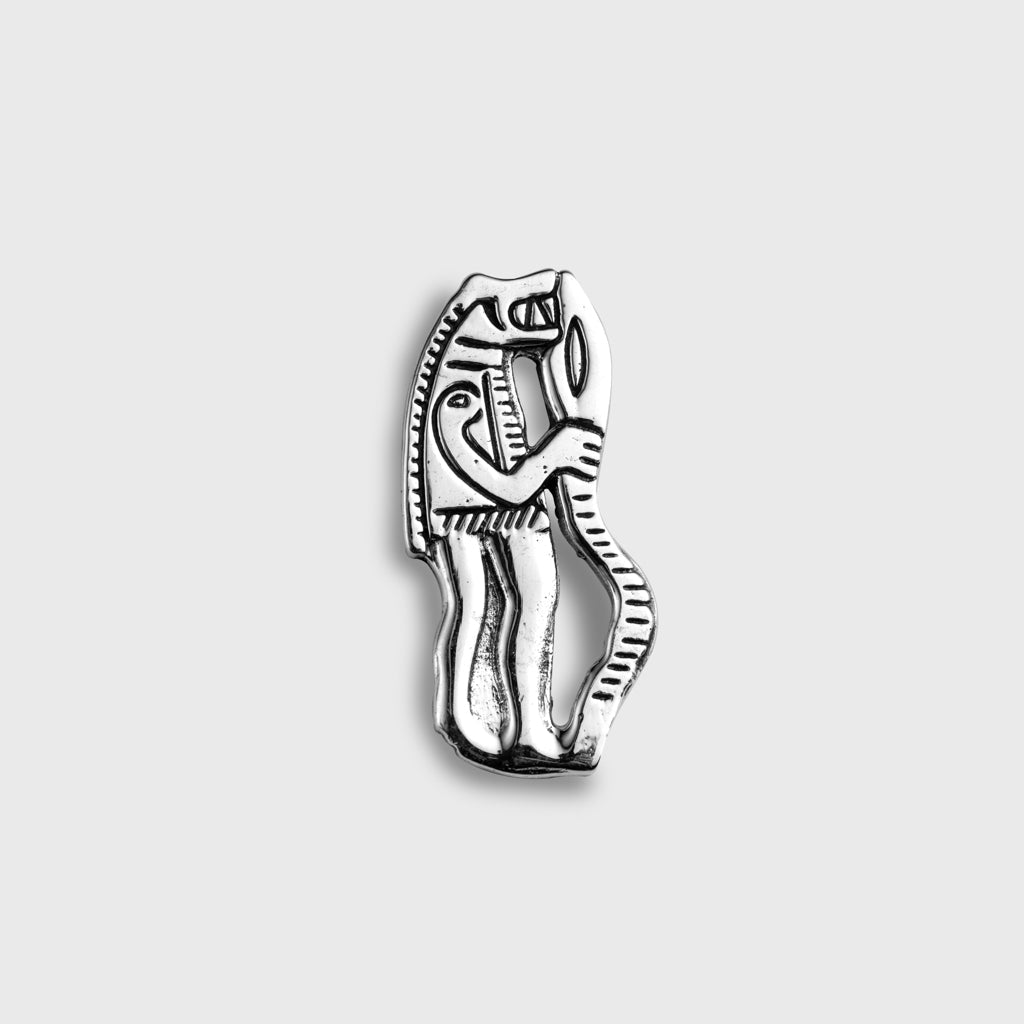 Pendant made in solid Sterling Silver depicting an Ulfhedinn chewing on a snake. It is based on the original item dated to 800s that was found in Upplands-Bro, Sweden. The chewing is connected to their frenzy and fearlessness. In the sagas they are described as "chewing the rims of their shields in frenzy".