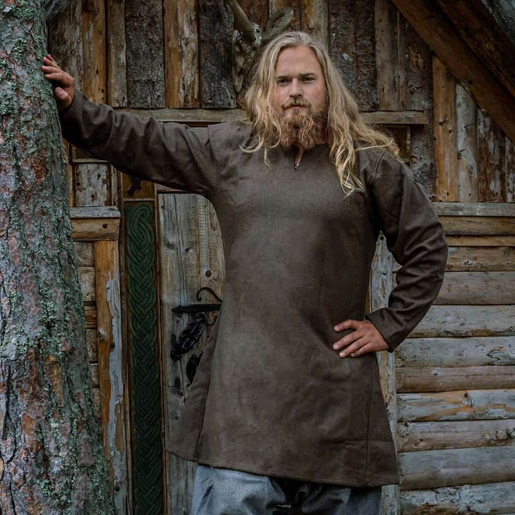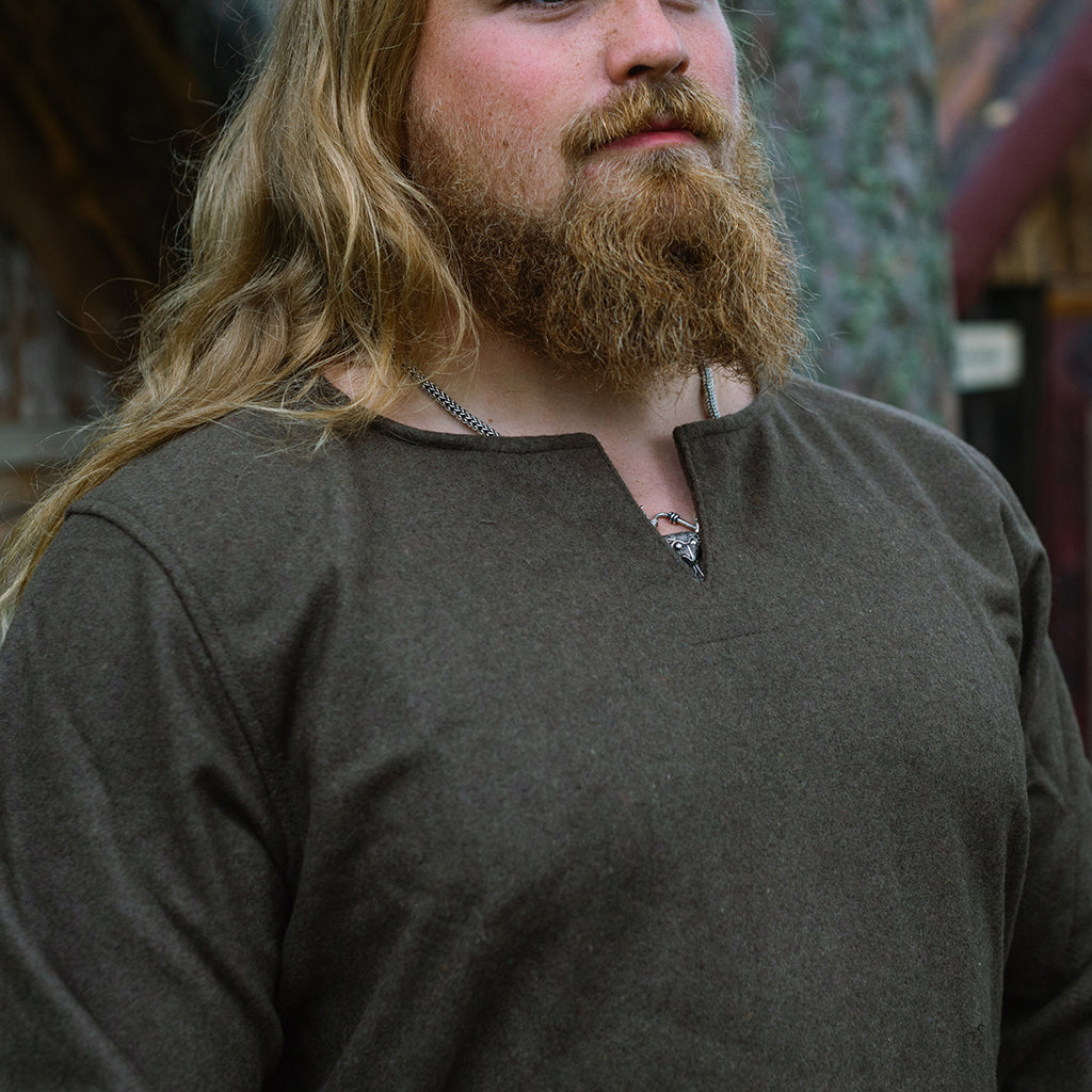 Great looking, comfortable Viking Age tunic made from dense, durable wool. It comes with historically accurate gores on the sides and fitted sleeves as seen in the finds from Hedeby harbor. As an outer garment, it will keep you warm on cold or windy days.