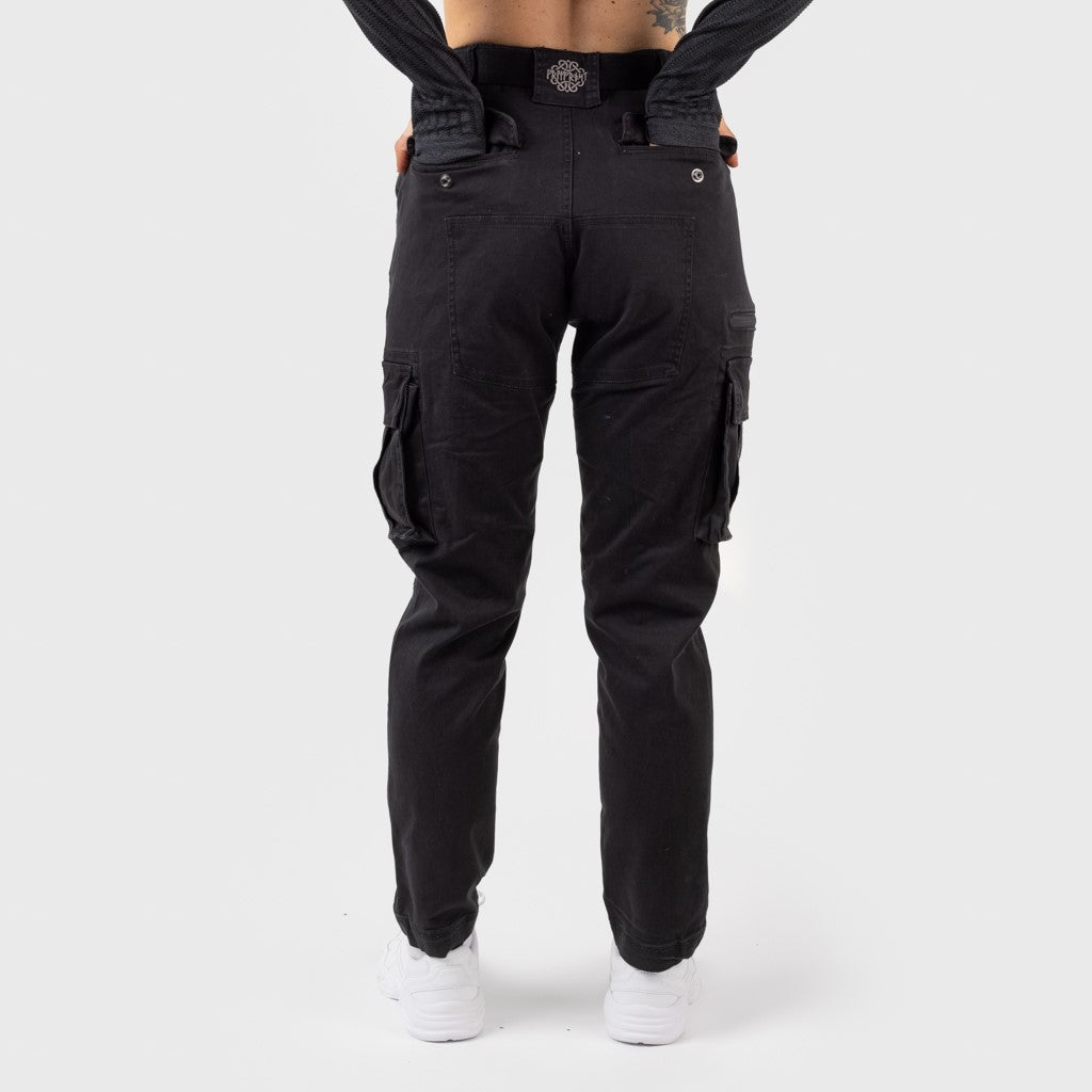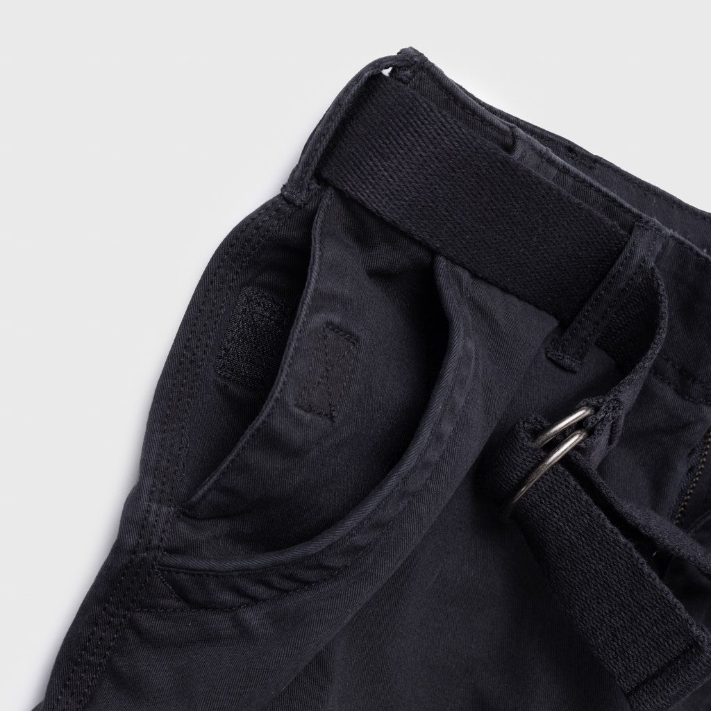 Unique cargo pants made from high-density twill that will stand the test of time. They have a vintage garment wash, come with a robust, woven belt and a backside reinforced with an extra layer of fabric. With no less than 9 (!) pockets, they will hold and hide most of your belongings.